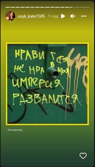 «Подобається, не подобається – (російська) імперія розвалиться», - говорить надпис на предметі архітектури, фото якого перепостила Катерина.