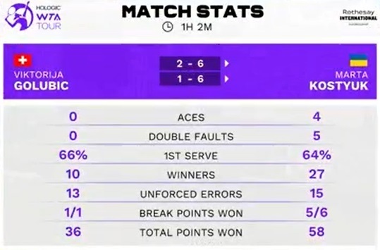 Марта Костюк (Україна) – Вікторія Голубич (Швейцарія) – 6:2, 6:1