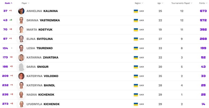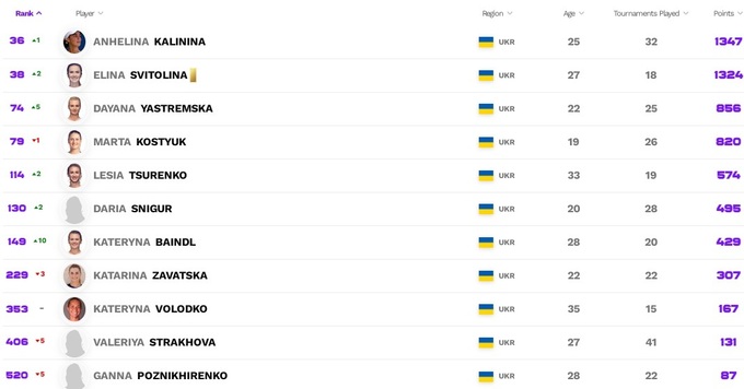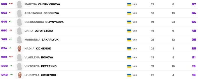 Щодо українок, то практично всі наші представниці з топ-200 трохи додали. Один рядок втратила лише Марта Костюк, яка поступилася званням третьої ракетки України Даяні Ястремській.