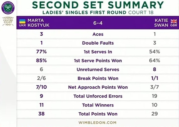 Марта вдруге поспіль зіграє у другому раунді турніру Вімблдону. У наступному колі українка зіграє проти Шуай Чжан з Китаю (№41 WTA).