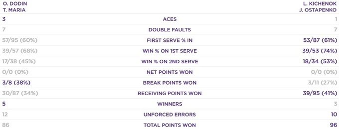 У першому колі в дуеті з Альоною Остапенко із Латвії українка обіграла французько-німецький тандем Осеан Доден / Татьяна Марія.