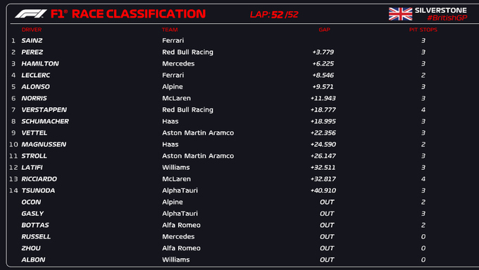 Карлос Сайнс виграв драматичну гонку в Англії, Перес і Хемілтон - у топ-3