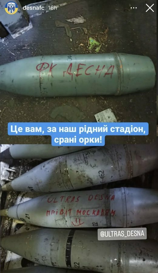 Уболівальники чернігівського клубу підписали снаряди, які полетять у бік загарбників.