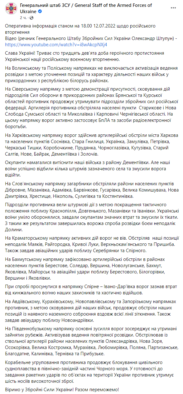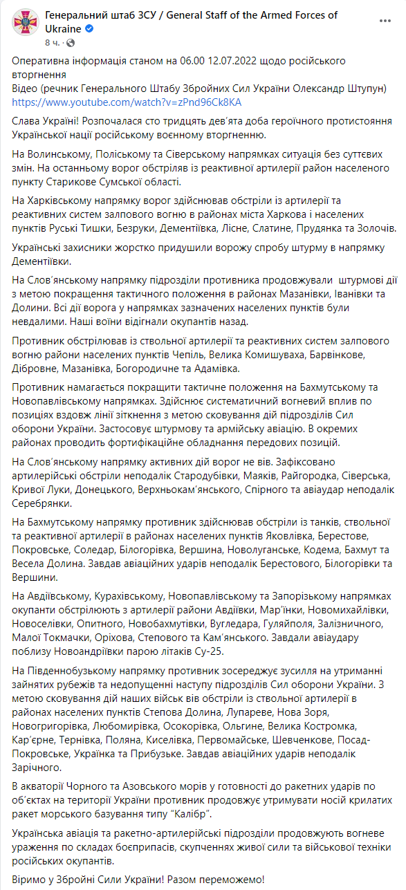 00:00. Початок 139-го дня війни, 12 липня