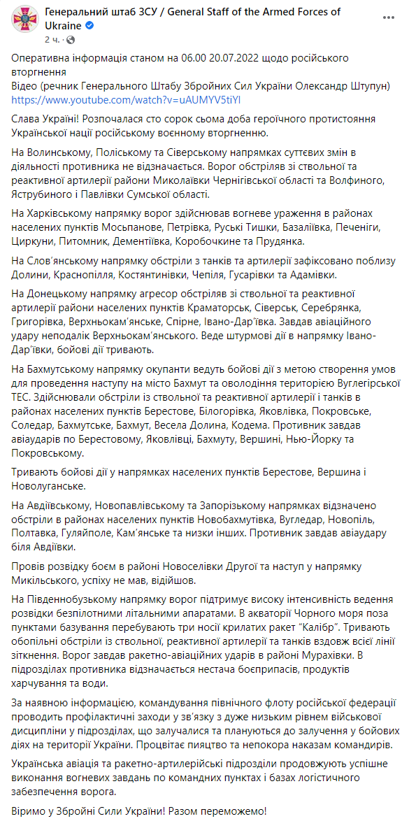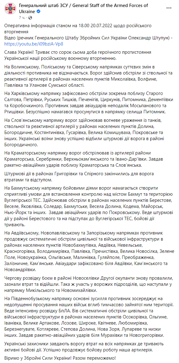 00:00. Початок 147-го дня війни, 20 липня