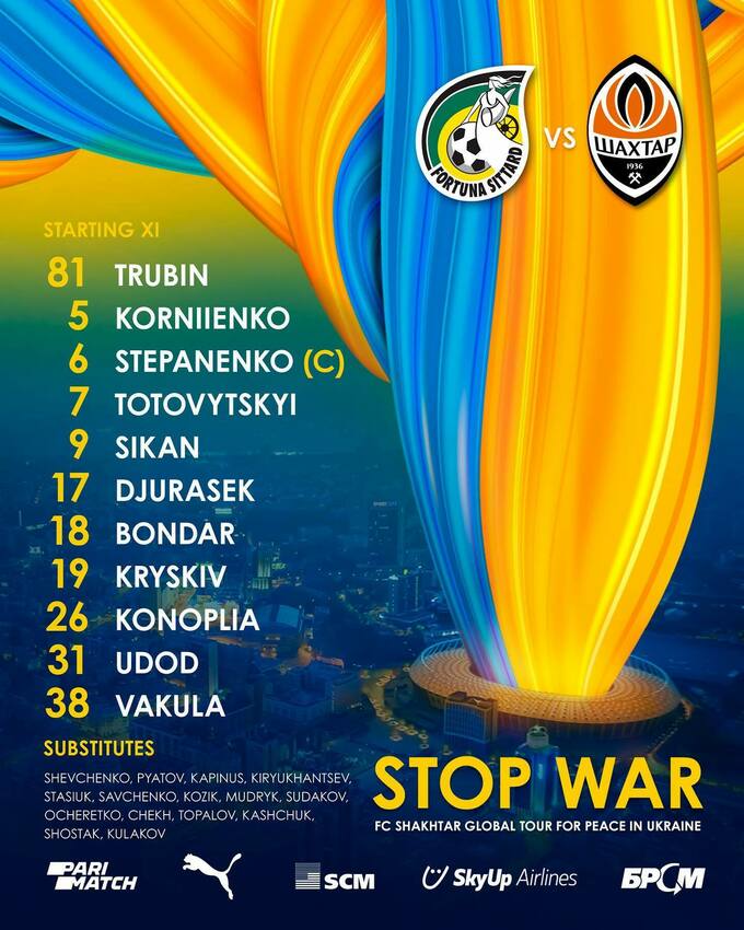 Далі «гірники» зіграють благодійні матчі з «Аяксом» (26 липня) та «Утрехтом» (30 липня) у рамках Shakhtar Global Tour for Peace. Кошти від реалізації квитків та реклами спрямують на придбання всього необхідного для захисників України, українських громадян та дітей, які постраждали від війни.