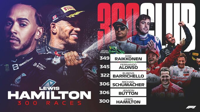 Гран-прі Франції, яке пілот Мерседеса Льюїс Хемілтон завершив на 2-му місці, став для пілота 300-м у його кар'єрі Формули-1.