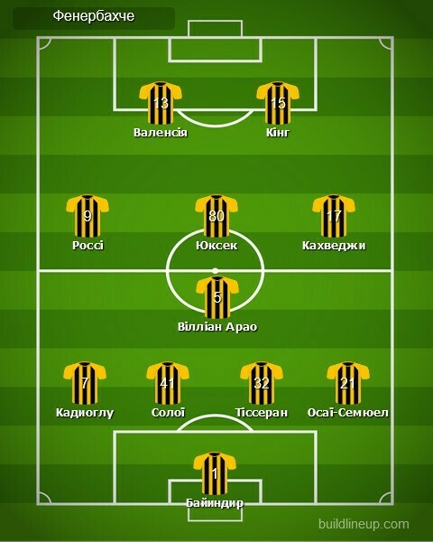 «Фенербахче»: Байиндир, Кадиоглу, Тіссеран (Лінкольн, 85), Солої, Осаї-Семюел, Кахведжи (Мор, 46; Брума, 77), Юкчек, Вілліан (Новак, 95), Россі, Валенсія (Дурсун, 77), Кінг (Крешпу, 63).