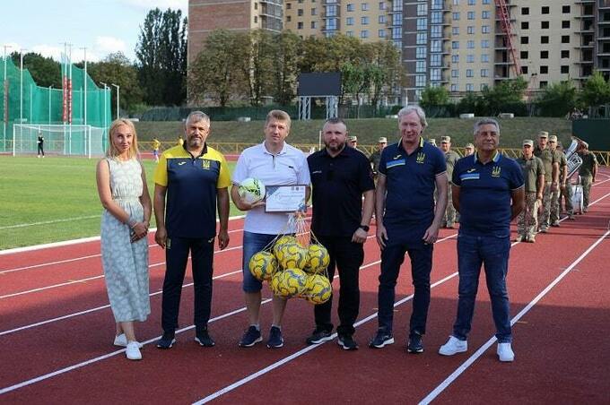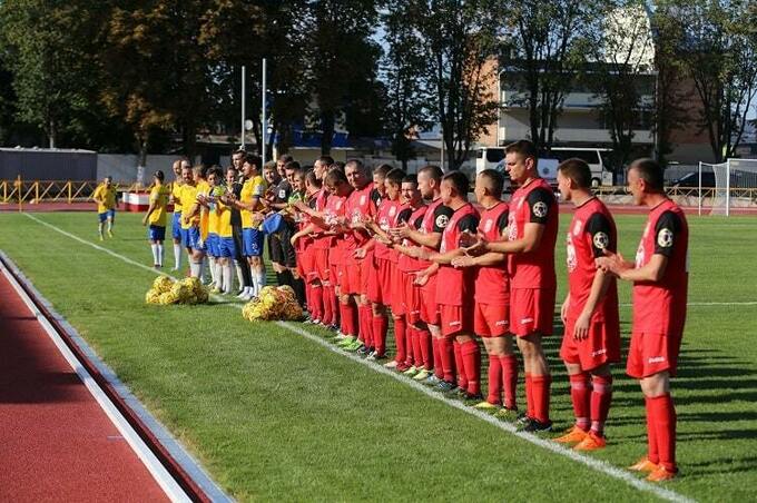 Після завершення церемонії першій матч на реконструйованому стадіоні зіграли між собою військові з ФК «Фортеця» та представники шоу-бізнесу з ФК «Маестро». Перемогу святкували представники ЗСУ - 3:0. Вони ж перемогли і в додатковій серії пенальті - 5:3.