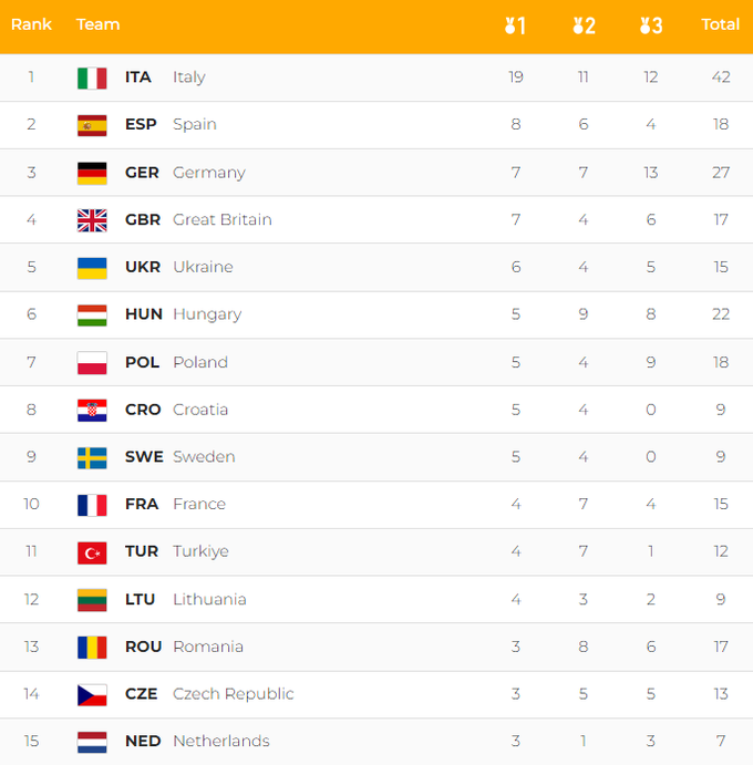 У синьо-жовтих в активі 15 медалей (6 золотих, 4 срібних, 5 бронзових), і це 5-те місце в медальному заліку ЄЮОФ.