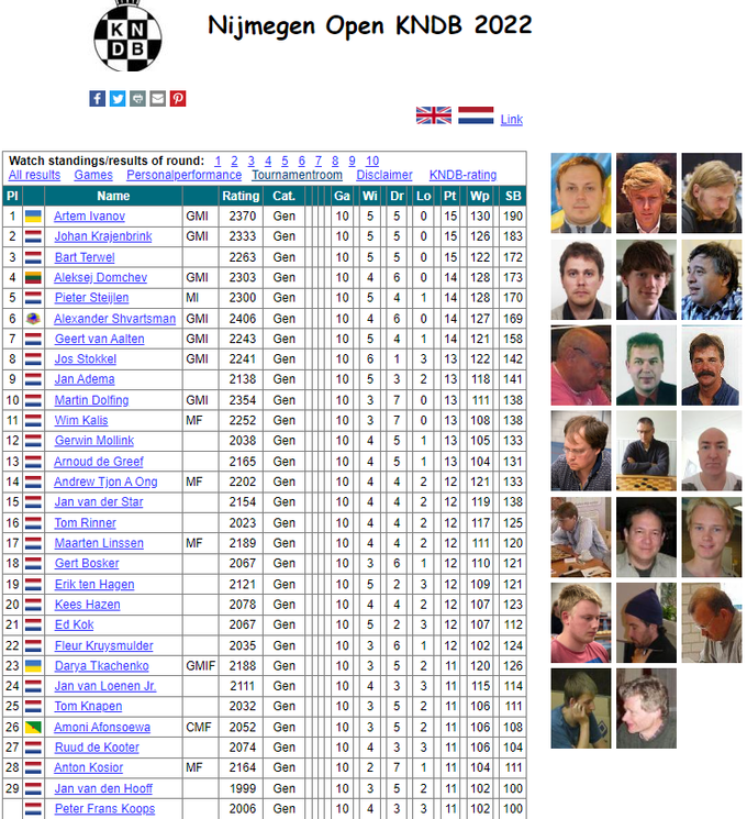 Артем набрав 15 очок з 20 можливих і за додатковими критеріями обійшов двох нідерландських суперників. Йохан Крайєнбрінк та Барт Тервел увійшли до топ-3, але не зуміли випередити українця.