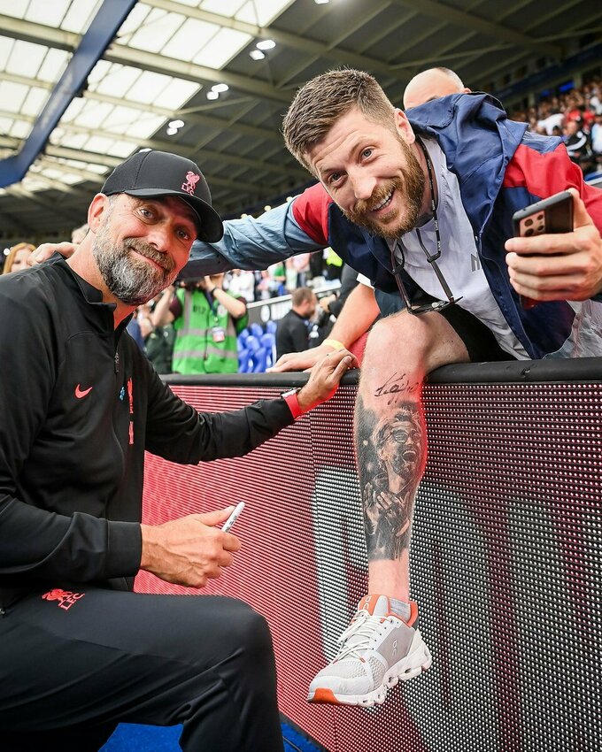 Один із фанатів «червоних» попросив німецького наставника залишити автограф на його нозі, де якраз красувався портрет улюбленого тренера.