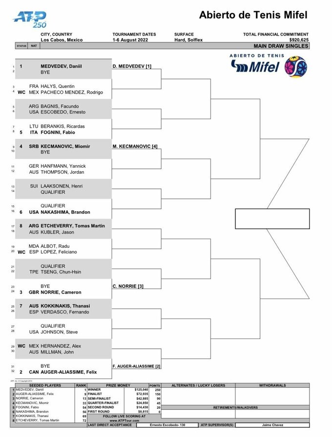 Звісно, з такою легкою сіткою перша ракетка Данііл Медведєв має проходити у фінал (ще б на челенджер заявився). Але і Фелікс Оже-Альясім, і Кемерон Норрі здатні обіграти на такому харді росіянина, тим більше, він зараз не в найкращий формі.