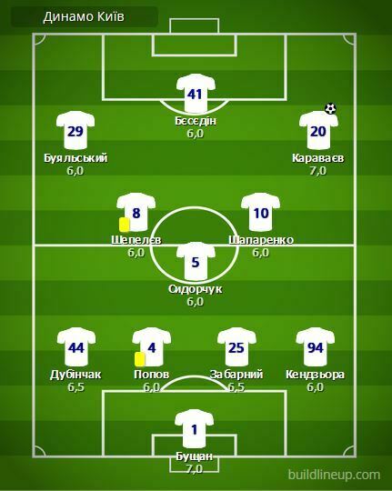 Заміни «Динамо»: Вівчаренко - 6,0; Гармаш - 6,0; Ванат - б/о.