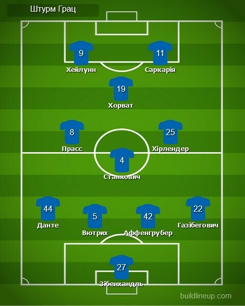 «Штурм»: Зібенхандль, Данте (Шнегг, 68), Вютрих, Аффенгрубер, Газібегович, Станкович, Прасс (Демаку, 78), Хірлендер (Любич, 67), Хорват, Хейлунн (Ланг, 89), Саркарія.