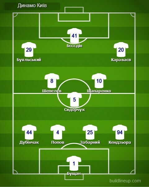 «Динамо»: Бущан, Дубінчак (Вівчаренко, 71), Попов, Забарний, Кендзьора, Шепелєв (Гармаш, 71), Сидорчук, Шапаренко, Буяльський, Караваєв, Бєсєдін (Ванат, 83).