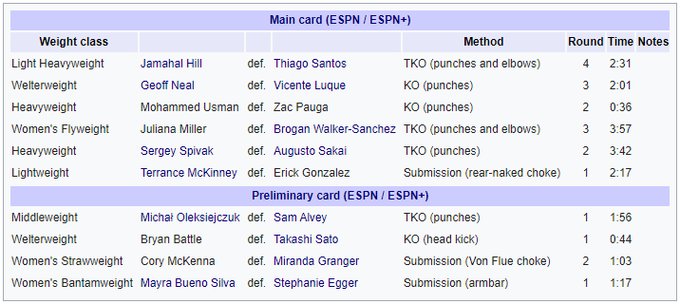 У головному бою американський боєць Джамал Хілл здобув дострокову перемогу над бразильцем Тіаго Сантосом.