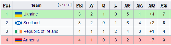 Україні залишилося провести поєдинки проти Шотландії (21 і 27 вересня) та Вірменії (24 вересня).