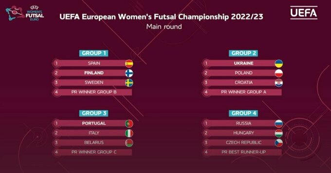 Жіноча збірна України з футзалу розпочне свій шлях з основного раунду, де суперниками групи 2 будуть Польща, Хорватія та переможець групи А попереднього раунду, яким стали Нідерланди. Україна попередньо мала бути господарем міні-турніру, проте через російську агресію УЄФА переніс поєдинки відбору до Польщі.