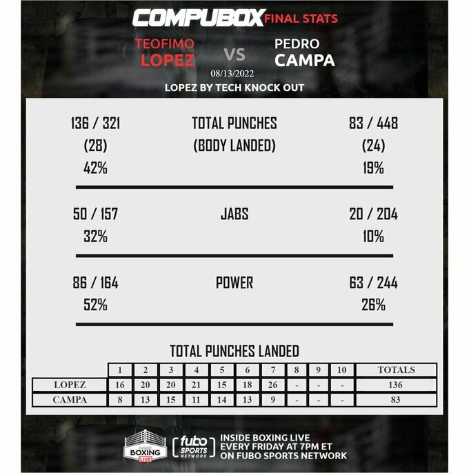Теофімо Лопес - Педро Кампа. Статистика ударів