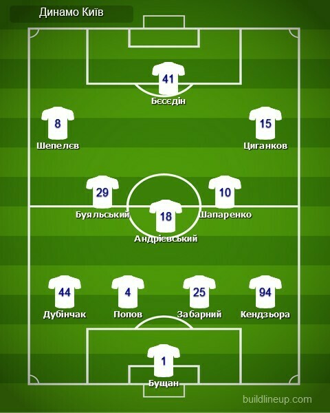 «Динамо»: Бущан, Дубінчак (Вівчаренко, 63), Попов (Сирота, 80), Забарний, Кендзьора, Андрієвський, Шепелєв (Царенко, 74), Шапаренко, Буяльський, Циганков (Караваєв, 64), Бєсєдін (Ванат, 74).