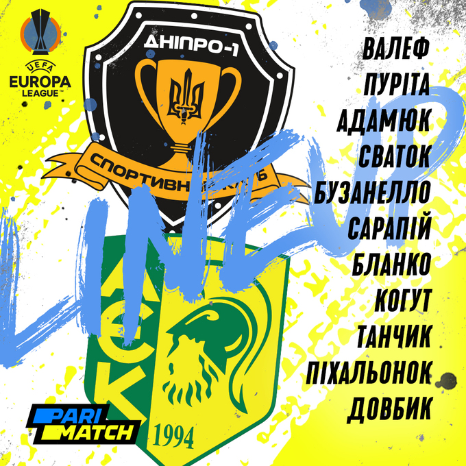«Дніпро-1»: Макс Валеф – Бусанелло, Сваток, Адамюк, Танчик – Сарапій, Когут (Громов, 46) – Бланко, Піхальонок, Пуріта (Назаренко, 61) – Довбик.