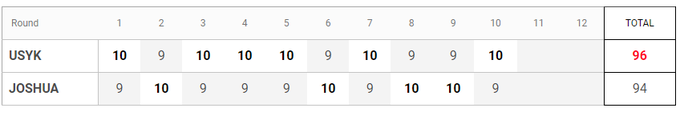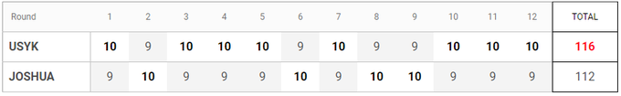 Оцінки суддів: 113-115 Джошуа, 115-113 Усик, 116-112 Усик!!!