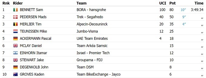 Четвертим фінішував Майк Тейніссен з «Jumbo Visma», що дозволило йому перехопити червону майку лідера загального заліку.