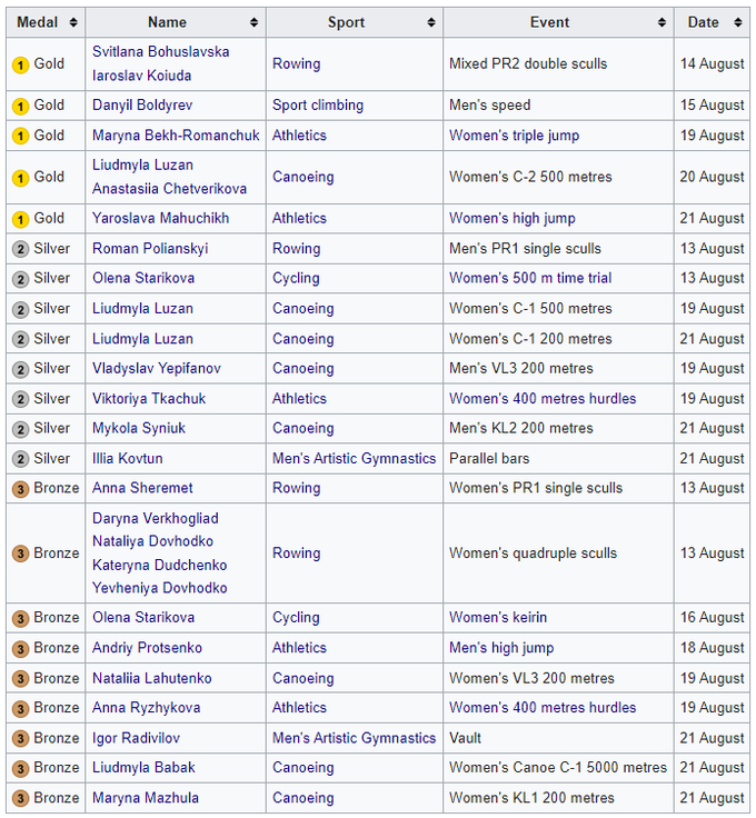 Всі медалі українців (5–8–9)
