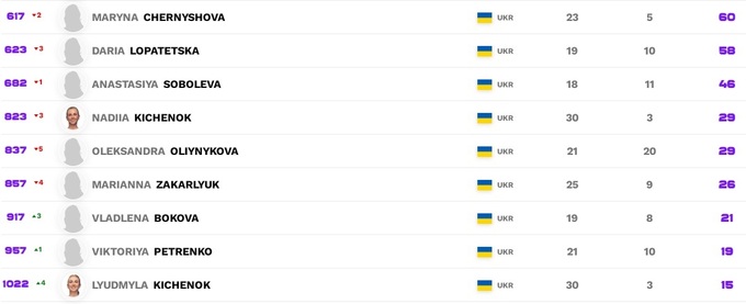 Костюк та Калініна покращили свої позиції у Чемпіонській гонці, Ястремська – трохи втратила. В інших без особливих змін.