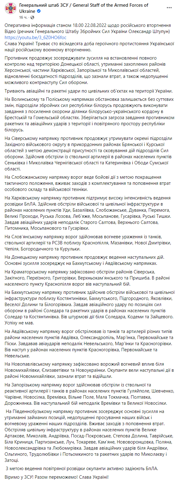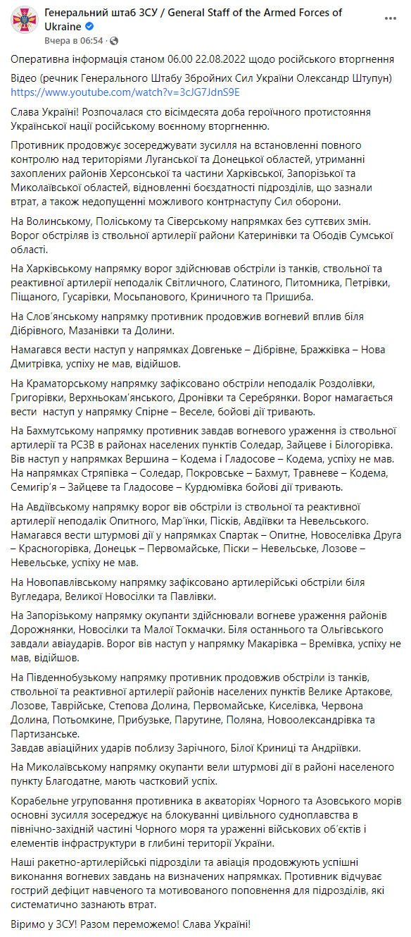 00:00. Початок 180-го дня війни, 22 серпня