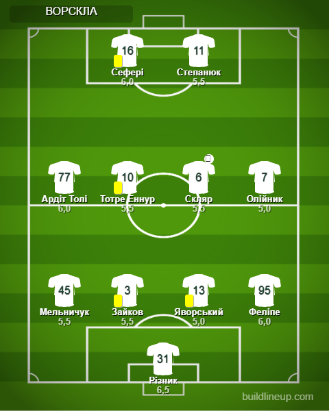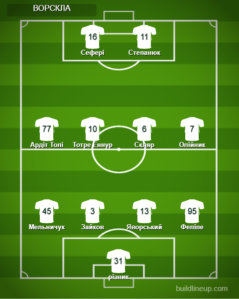 «Ворскла»: Різник - Феліпе (Козиренко, 49), Яворський, (Челядін, 68), Зайков, Мельничук, Ардіт Толі, Олійник (Марлісон, 86), Скляр, Тотре Еннур, Степанюк, Сефері (Кравчук, 86).