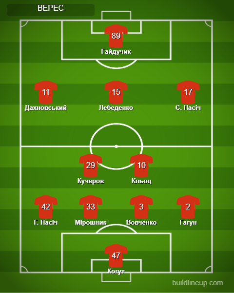 «Верес»: Когут - Гагун, Мірошник, Вовченко, Є. Пасіч, Кльоц, Кучеров (Курко, 88), Дахновський (В. Шарай, 77), Лебеденко (С. Шарай, 70), Г. Пасіч, Гайдучик (Сергійчук, 46, М. Шестаков, 88)).