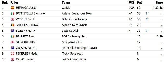 Іспанський велогонщик команди «Cofidis» Хесус Еррада став переможцем сьомого етапу Вуельти-2022. У боротьбі з відриву він випередив Самуеле Баттістеллу та Фреда Райта.