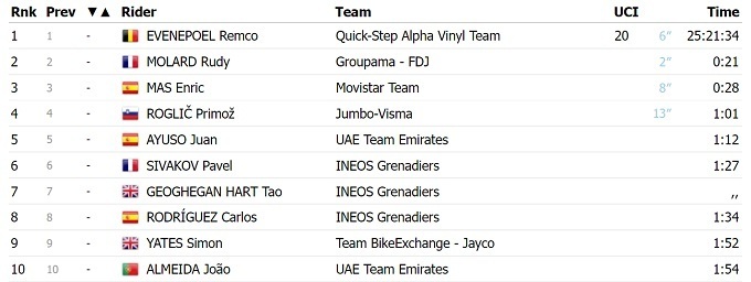Лідерство у загальному заліку зберіг бельгієць Ремко Евенпул із «Quick Step». Учора шостий етап виграв Джей Вайн.