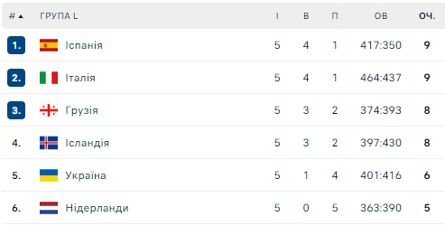 Баскетбол. Кваліфікація ЧС-2023. Турнірна таблиця