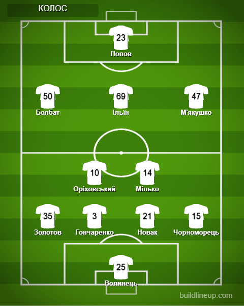«Колос»: Волинець - Чорноморець, Гончаренко, Новак, Золотов - Оріховський (Задоя, 89), Мілько (Смирний, 46) - М'якушко (Ісаєнко, 72), Ільїн (Лисенко, 89), Болбат - Попов (Безбородько, 56).