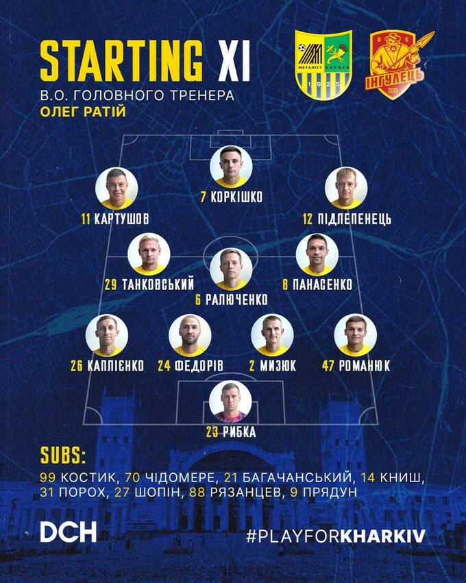 «Металіст»: Рибка – Каплієнко, Мизюк, Федорів, Романюк – Ралюченко – Картушов (Книш, 79), Панасенко (Багачанський, 67), Танковський (Чідомере, 79), Підлепенець – Коркішко (Прядун, 60).
