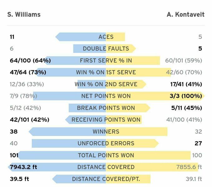 Серена Вільямс (США) – Анетт Контавейт (Естонія) – 7:6 (7:4), 2:6, 6:2