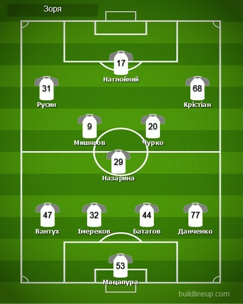 «Зоря»: Мацапура, Вантух, Батагов, Імереков, Данченко, Чурко (Сміян, 80), Назарина, Мишньов (Бражко, 63), Русин (Снурніцин, 71), Крістіан (Алефіренко, 80), Нагнойний (Луньов, 63).