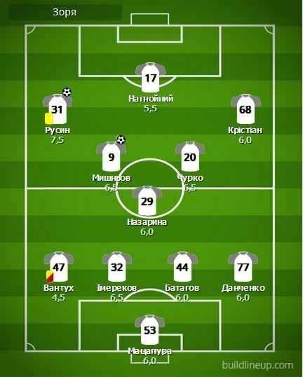 Заміни «Зорі»: Луньов - 6,0; Бражко - 6,5; Снурніцин - 6,0; Алефіренко - б/о; Сміян - б/о.
