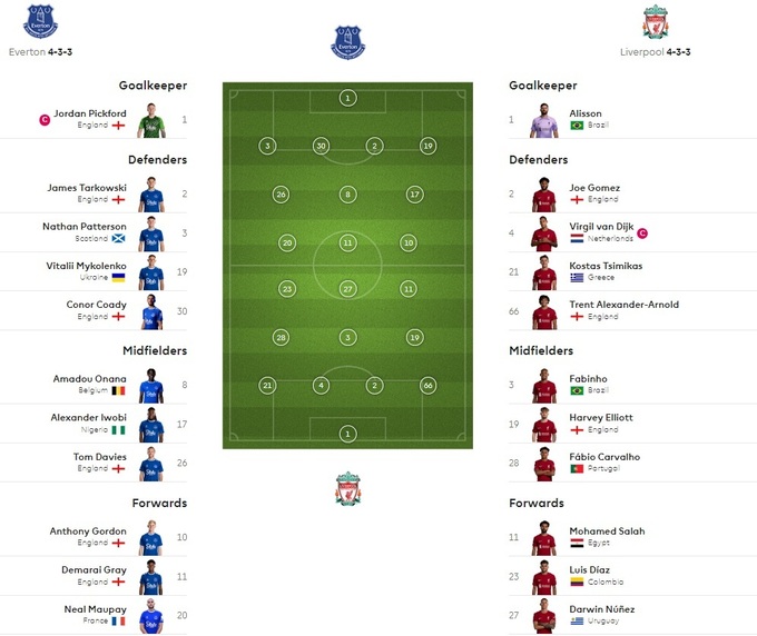 «Ліверпуль»: Алісон, Гомес, Ван Дейк, Цімікас, Александер-Арнольд, Фабіньо, Еліотт, Карвалью, Салах, Діас, Нуньєс