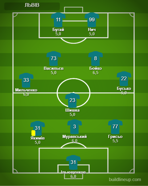 Заміни Львова: Мишенко - 4,5, Крушинський - 5,0, Ременяк - 5,0, Вовкун - б/о.