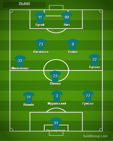 «Львів»: Ільющенков - Нич (Ременяк, 77), Якимів (Вовкун, 85), Муравський, Грисьо, Бусько, Шишка (Крушинський, 63), Мильченко, Бойко, Бугай (Мишенко, 63), Васильєв.