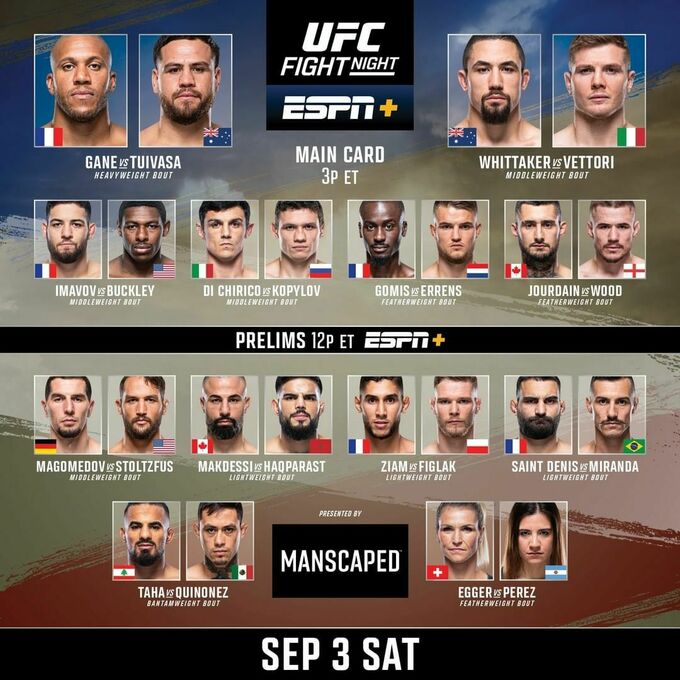 Увечері 3 вересня у Парижі, столиці Франції, проходить турнір зі змішаних єдиноборств UFC Fight Night 209.