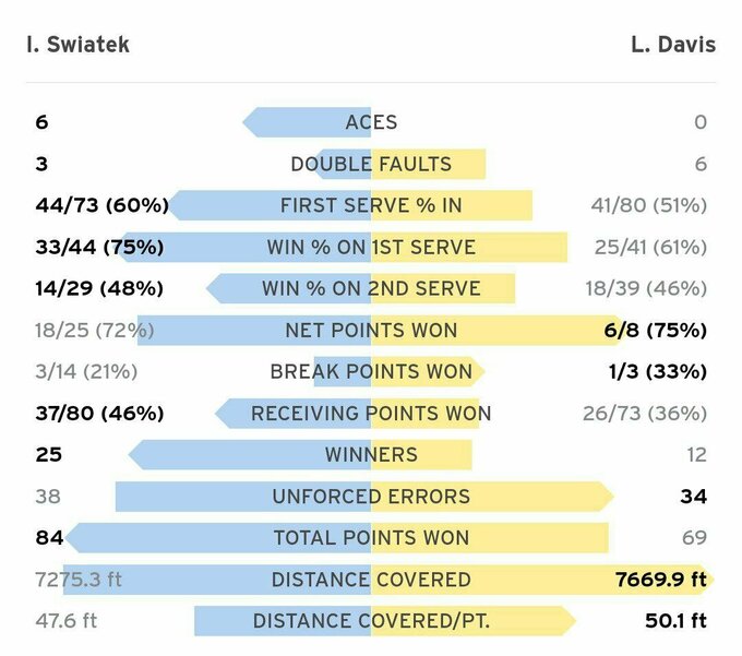 Іга Свьонтек (Польща) – Лорен Девіс (США) – 6:3, 6:4