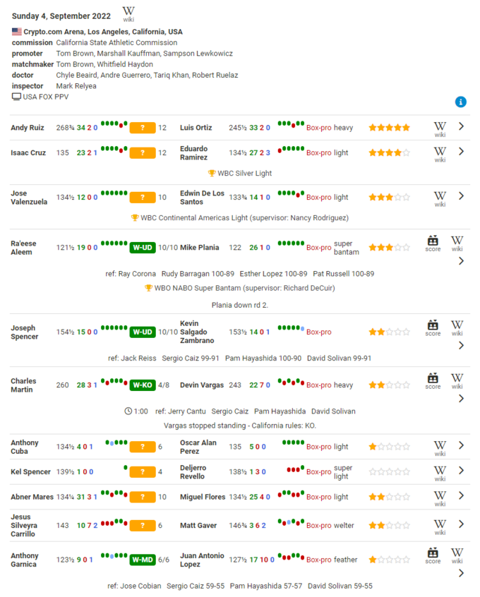 На ринг вийдуть екс-чемпіон світу Енді Руїс із США (34–2, 22 KO) та колишній претендент на чемпіонський пояс Луїс Ортіс із Куби (33–2, 28 KO, 2 NC).