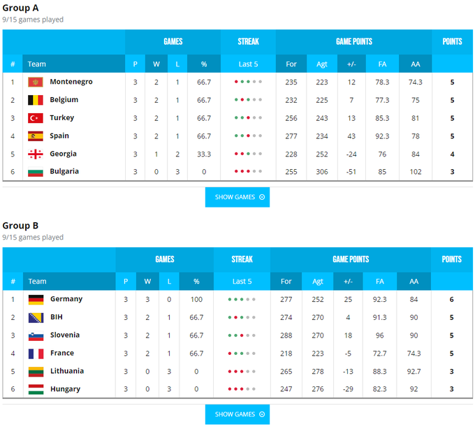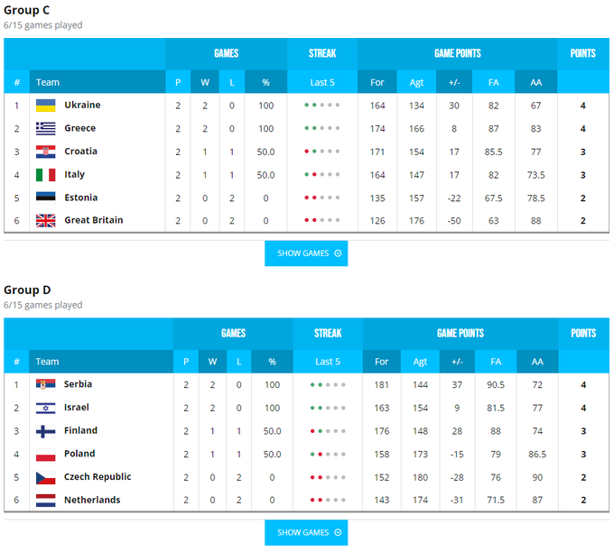 Синьо-жовті стартували на чемпіонаті Європи з двох перемог – над Великобританією (90:61) та Естонією (74:73). У складі української команди виступають два гравці з НБА – Святослав Михайлюк та Олексій Лень. Збірна України очолює групу C після двох турів.