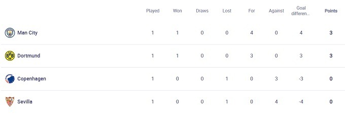 У другому матчі першого туру Ліги чемпіонів у групі G «Манчестер Сіті» на виїзді розгромив «Севілью». Дубль на рахунку Ерлінга Холанда.
