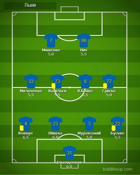Заміни «Львова»: Крушинський - 5,0; Якимів - 5,5; Бугай - 5,0; Ременяк - 5,0; В.Михайлів - б/о.